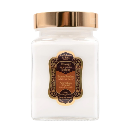 A concentration of nourishing and revitalising ingredients for the skin with an opulent aroma. Especially effective for the driest of skin, this truly rich and melting balm, brings pure regenerative care, illuminating the skin and bringing a moment of pure wellbeing. Enriched with organic shea butter, organic sweet almond oil and argan oil, it is easily applied and leaves the skin supple, nourished and delicately scented.Melting Balm Oriental Ayurvedic Amber Vanilla Patchouli Fragrance