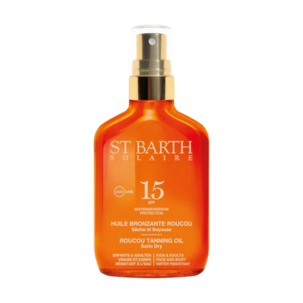 This legendary tanning oil contains coconut oil and selected plant oils along with precious roucou, embodying the intensity of a Caribbean summer. The deep red seeds of the roucou shrub were used as a traditional form of sun protection by the Caribbean Indians due to the high proportion of provitamin A. This stimulates melanin production and the skin’s own protection mechanism. The nutrients in this special formula pamper the skin while you sunbathe and give your tan a gentle, copper-coloured shimmer. Sunbathe in the morning or afternoon for the best tan: UV rays are at their most dangerous between noon and 4 p.m. Do not spend too much time in direct sun. Consider how intense the sun’s rays are in your particular location. This product is not deliverable in the United States.ROUCOU TANNING OIL SPF 6
